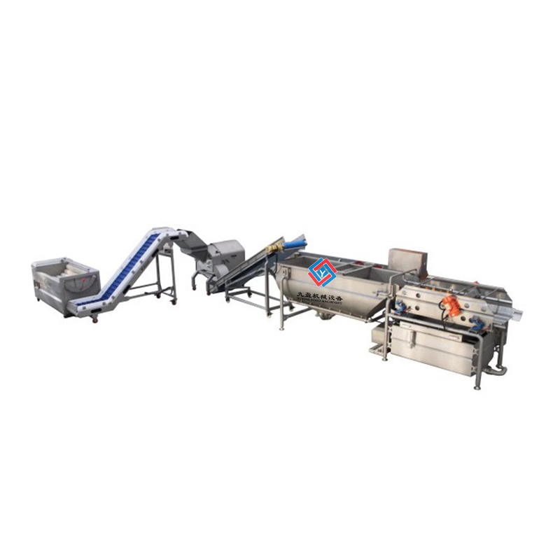 1.根莖類(lèi)的蔬菜需要先進(jìn)行毛輥清洗干凈之后去品,然后浸入氣泡清洗劑洗凈之后進(jìn)入到下一個(gè)工序。