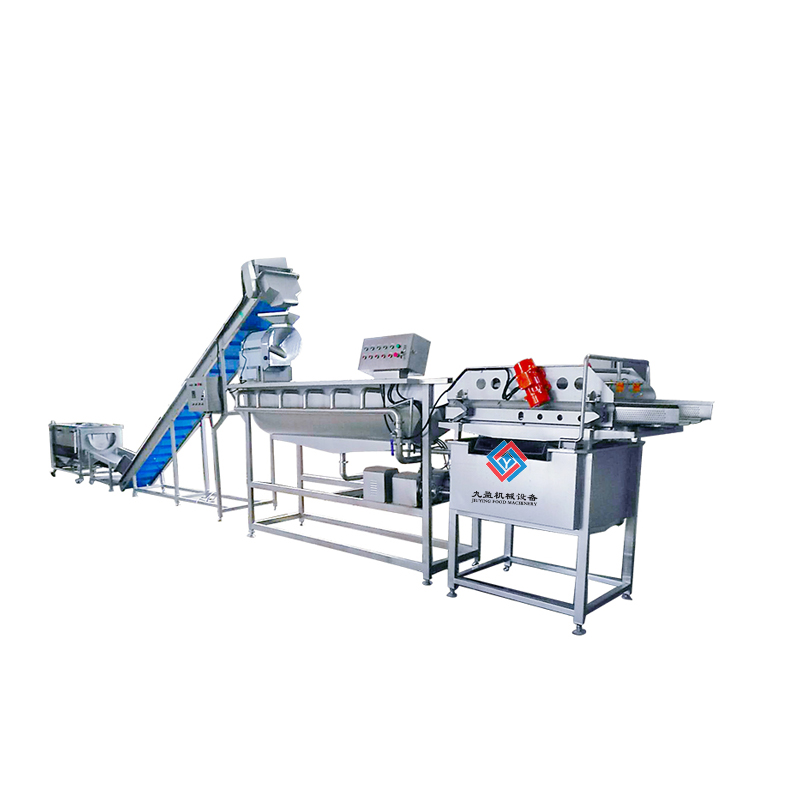 蔬菜清洗加工生產(chǎn)線(xiàn)前道工序可以將原料輸送至切菜機,之后通過(guò)切菜機進(jìn)行物料的加工,通過(guò)進(jìn)入皮帶提升機,再通過(guò)提升機將物料輸送至水流清洗機進(jìn)行清洗,水流會(huì )通過(guò)輸送帶將產(chǎn)品傳送至振動(dòng)瀝水機進(jìn)行去渣工作,之后再進(jìn)入二次水流清洗機用流水進(jìn)行清洗,0-5度的冷水能夠保證蔬菜的質(zhì)量、口感、成色以及儲存周期的特點(diǎn),之后通過(guò)二次振動(dòng)瀝水機進(jìn)行濾水除渣,就能夠完成蔬菜前期的處理工作。